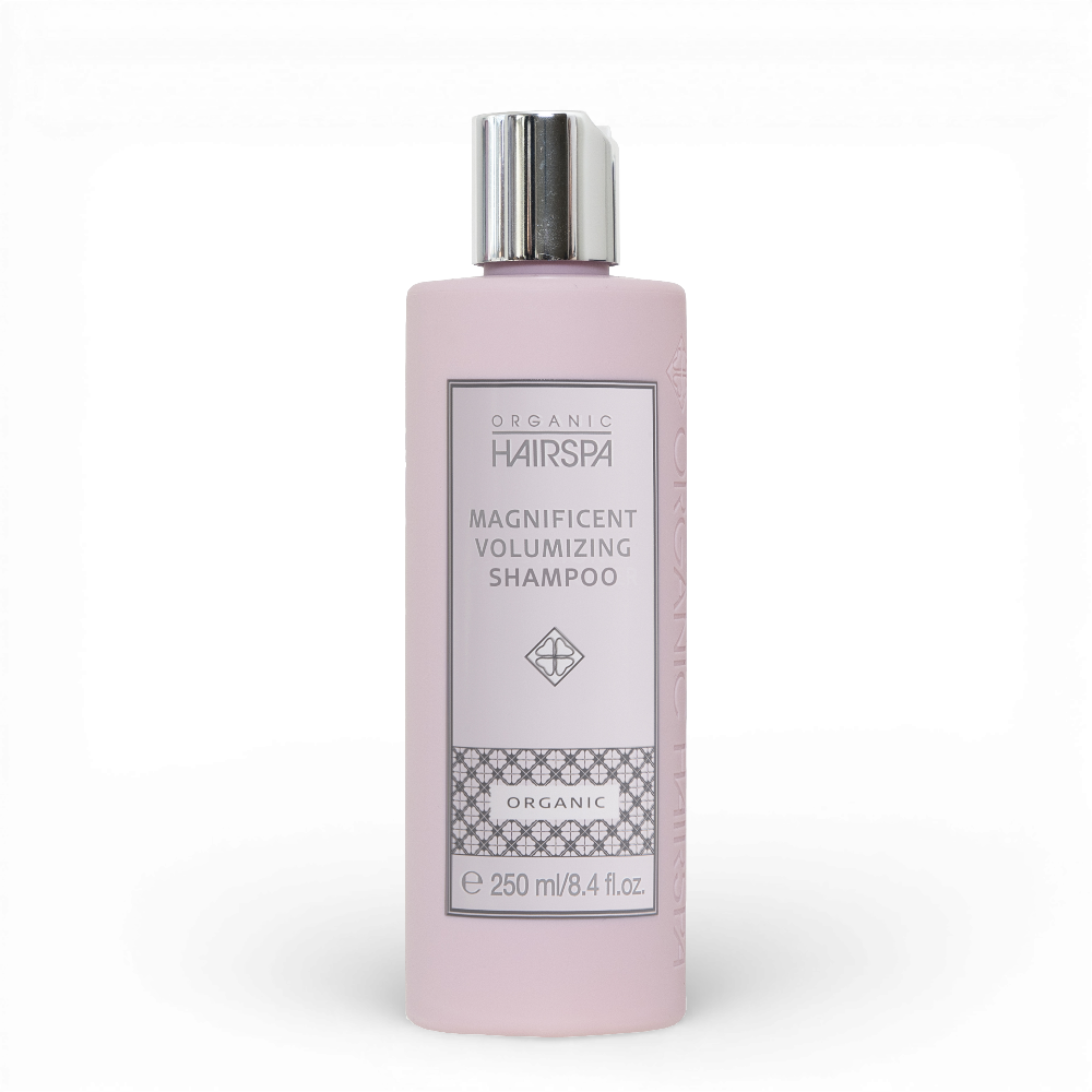 Organic Hairspa Magnificent Volumzing Shampoo er skabt til at give dit hår ekstra volumen uden at tynge det ned. Den sulfatfri formel renser håret skånsomt, hvilket bevarer hårets naturlige fugt og glans. Ideel til både fint, kraftigt og normalt hår, uanset om det er bølget, glat eller krøllet.