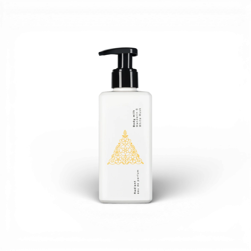 Radiant Makeup Body Milk kombinerer mandarin og hvid moskus for at give din hud en blødgørende og fugtgivende oplevelse. Denne bodylotion er velegnet til alle hudtyper og giver en behagelig duft og pleje, der varer hele dagen.